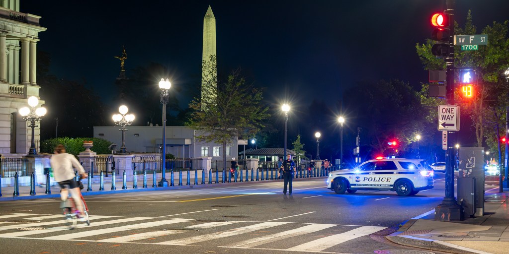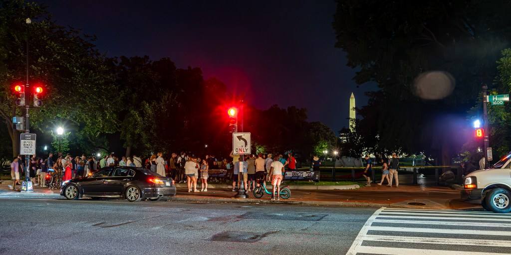 As the President of the United States addressed a nation about the escalating conflict in the Middle East and involvement from the air, a small crowd gathered near Lafayette Square, which had already been cleared and blocked off with police tape.