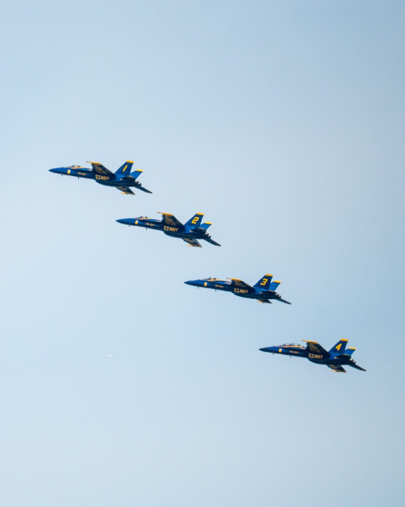 There were a variety of settings for this set of photos in order to have different shots. Most used a quick shutter speed, but some were slower and trying to capture motion blur — and also trying not to get blown away during “The Sneak” with one of the two jets in the pattern roaring to life and flying directly overhead.