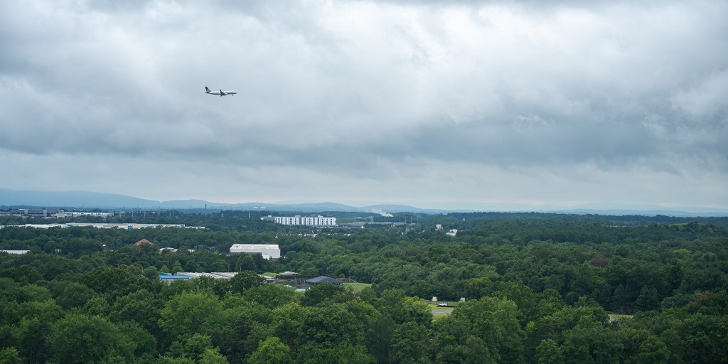 With rainy and overcast conditions dominating the weather on Friday morning, visitors were treated to a closer viewing experience of aircraft on final approach to Dulles International Airport, with arrivals using runways 1C/1R and landing from the south instead of a more common pattern that brings flights near Leesburg and into the airport from the north on runways 19C/19R.