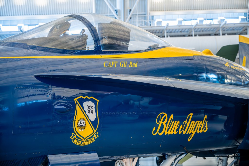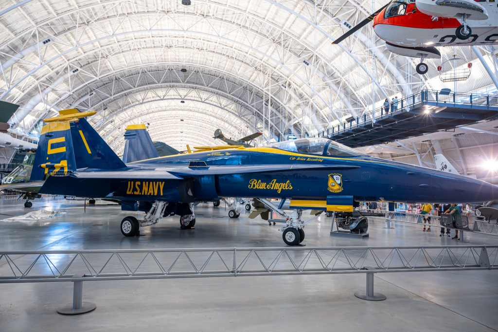 Several photos were available on this site from the air show practice intended for the Commissioning Week air show by the U.S. Navy Blue Angels in Annapolis, Maryland. In addition to a Blue Angels flight suit, the Smithsonian has one of the Boeing F/A-18C Hornet aircraft on display that was part of the flight demonstration team until 2020. The flight demonstration squadron migrated to using the Boeing F/A-18 Super Hornet in 2021.