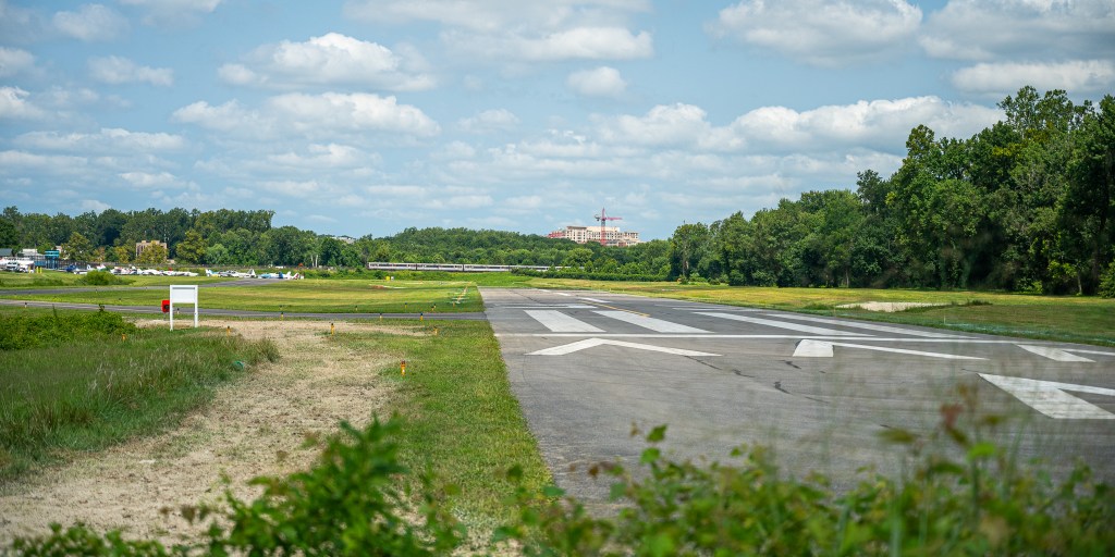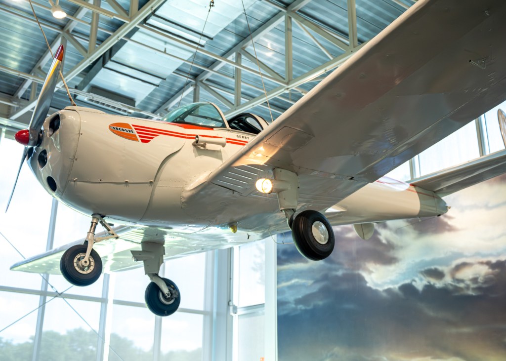 Once you exit the Metro station, walk to the traffic light and cross Campus Drive. Cross the intersection for Cpl. Frank Scott Drive and walk to the end of the street with the College Park Airport sign and turn right. The first building you’ll walk past is the airport operations building — which is used for today’s pilots flying in and out of KCGS (the airport’s FAA identifier) — and the next building will be the aviation museum.