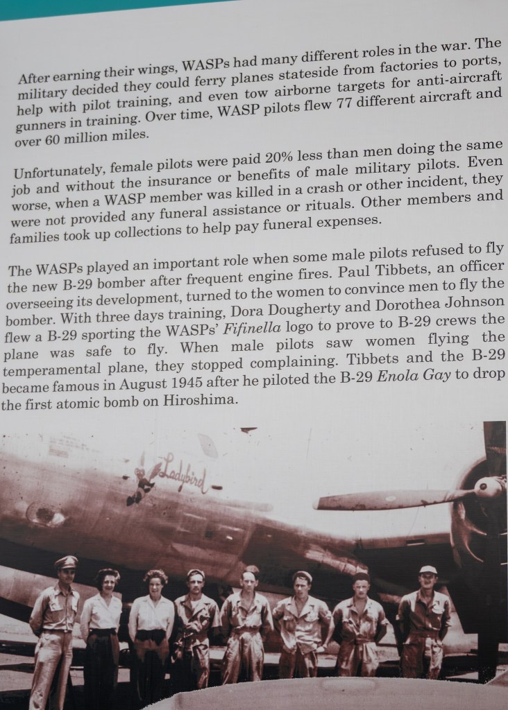 This panel about the Women Airforce Service Pilots is a great example of how the museum presents information to patrons and highlights important stories accompanying the exhibits. It’s very much a Goldilocks experience where the text-to-exhibit ratio is pretty good and not as overwhelming as other museums.